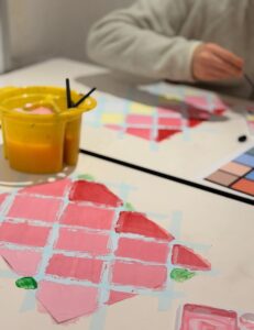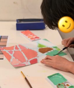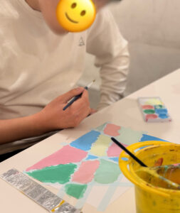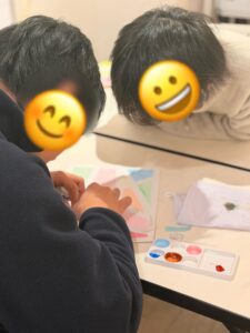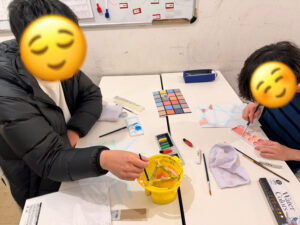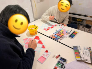 この日は絵の具を使って1人1つの作品づくり。
